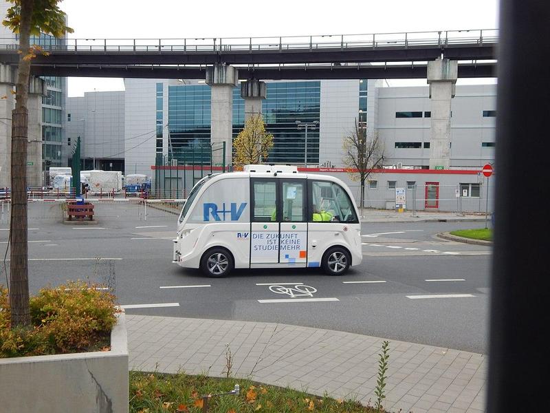 But the attendant can take over the vehicle with a small controller attached with what looks like bicycle handlebars. Olson says the fleet attendant may drive the shuttle from the garage to the road before having the driverless technology take over.